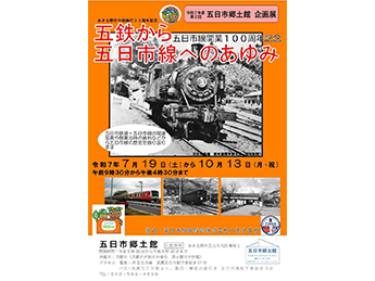 あきる野市 地域イベント 2025年7月19日(土) 〜 2025年10月13日(月) 令和7年度第2回五日市郷土館企画展『あきる野市市制施行30周年記念 五日市線開業100周年「五鉄から五日市線へのあゆみ」』 詳しく見る あきる野市について