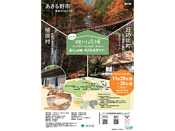 あきる野市 日の出町 檜原村 暮らし体験ツアー 開催中 2025年10月11日(土) 〜 2025年10月28日(火) 【申込受付期間】暮らし体験・空き家見学ツアー あきる野市・日の出町・檜原村② 詳しく見る 檜原村について